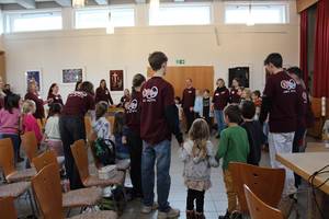 Beim abschließendem Plenum kamen noch einmal alle zusammen und zeigten ihre Basteleien, es wurde gesungen, gebetet und Pfarrer Fucker lud zum Gottesdienst ein.