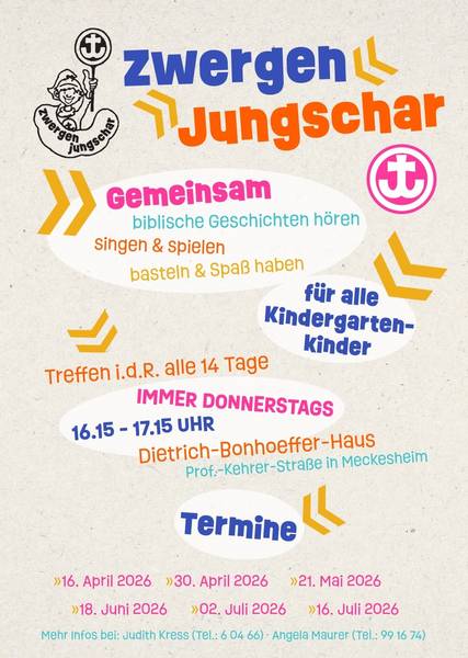 Der KiBiSa findet einmal im Jahr statt, wir sind im Moment ein Team von ca. 18 MitarbeiterInnen und würden uns über neue HelferInnen sehr freuen. Wir treffen uns in der Regel zwei Mal zu einer Vorbesprechung. Ansprechpartner sind Judith Kress (Tel: 6 04 66) und Angela Maurer (Tel: 99 16 74) oder über das Pfarramt.